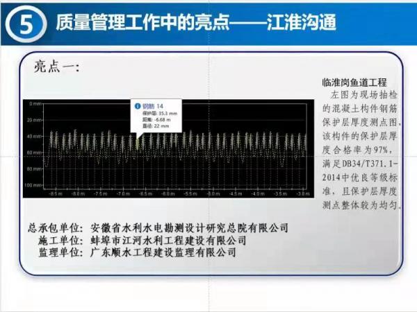 8月(yue)17日(ri),引(yin)江(jiang)濟(jì)(ji)淮集(ji)糰(tuan)公司(si)召(zhao)開(kāi)8月份質(zhì)量安(an)全(quan)視(shi)頻會(huì),會(huì)上(shang),蚌埠江(jiang)河(he)公司(si)承(cheng)建(jian)的臨(lin)淮崗(gang)魚(yú)(yu)道(dao)工(gong)程(cheng)混(hun)凝土鋼(gang)筋保護(hù)層(ceng)作(zuo)爲(wèi)亮點(diǎn)在(zai)視頻會(huì)(hui)上交(jiao)流。